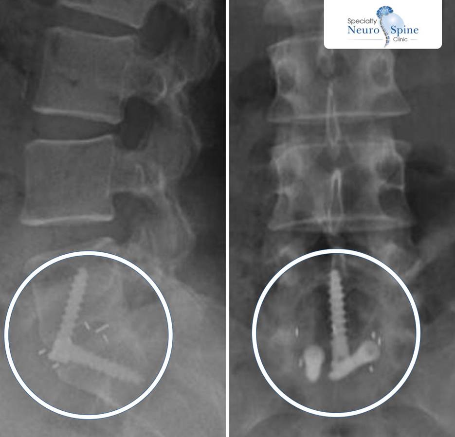 The above X-Ray image shows the complexity of the OLIF procedure conducted by Dr. Firas Husban on Zainab more than 10 years ago – (Source: Dr. Firas Husban / Checkers Inc.)