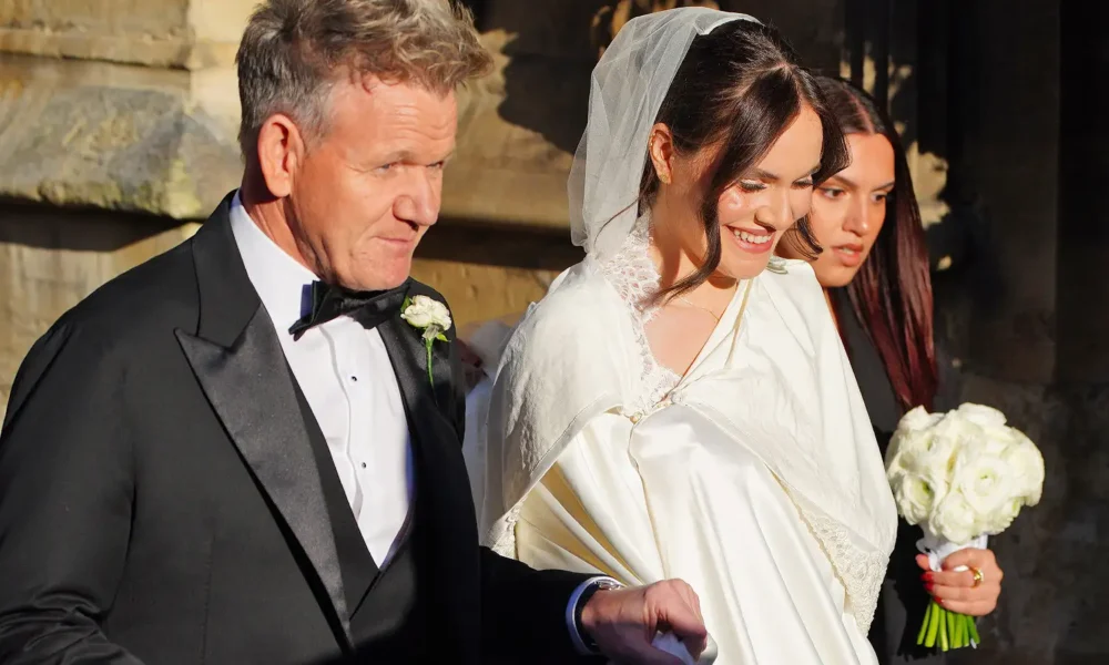 He admitted to being a teary-eyed father of the bride, telling Hudson, “I was very emotional.” As footage was shown of the celebrity chef seeing his daughter in her white lace gown and veil for the first time, Gordon quipped, “I was crying ’cause I realised how expensive the dress was there. That’s when it suddenly hit me.”