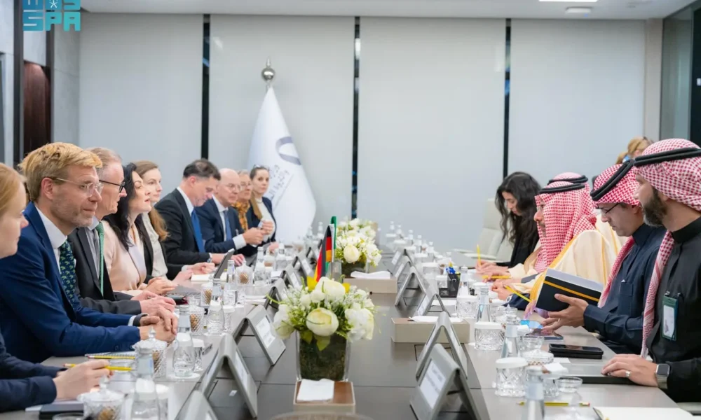 Minister of Industry and Mineral Resources Bandar Alkhorayef met on Sunday at the ministry’s headquarters with German Federal Minister for Economic Affairs and Energy Katherina Reiche to discuss ways to strengthen economic ties and explore investment partnership opportunities in the industrial and mining sectors.